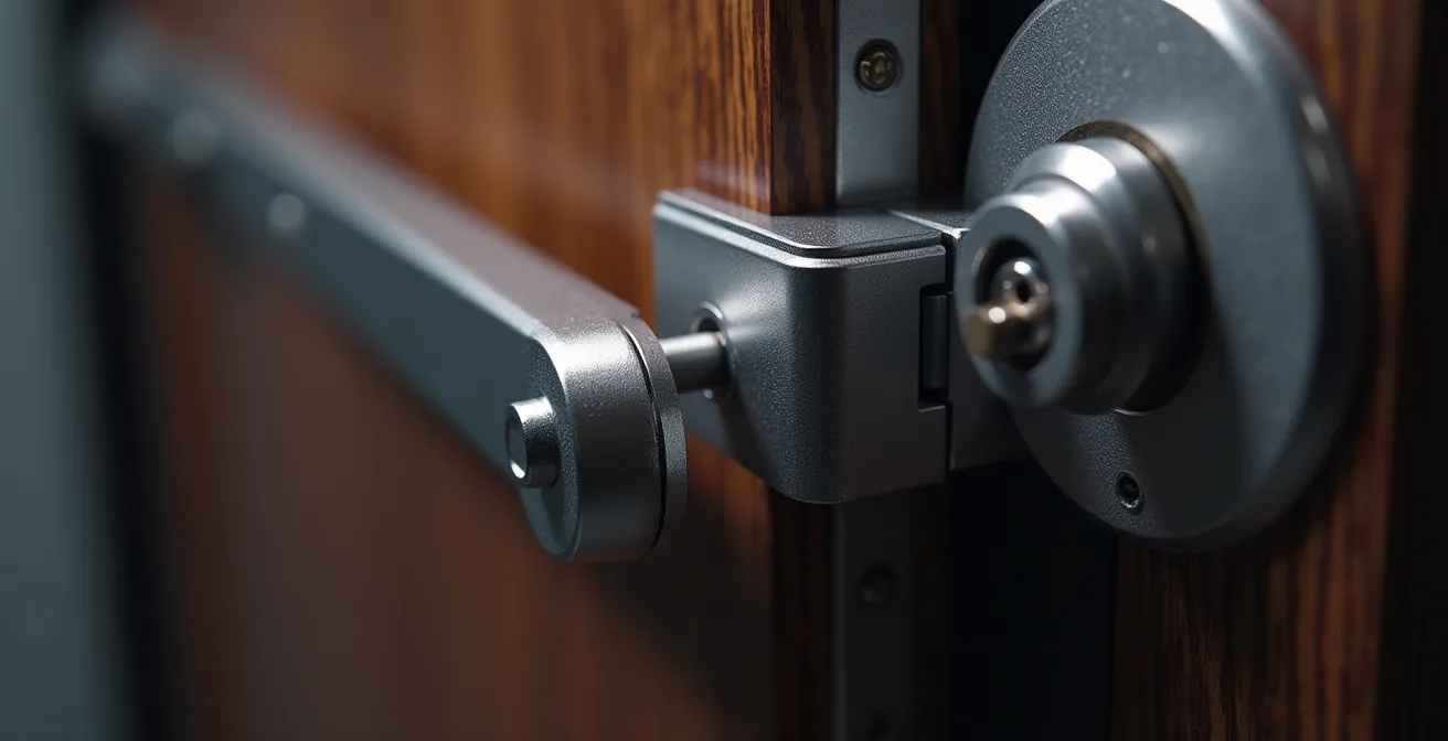 La plupart des propriétaires ne regardent jamais leurs paumelles. C’est une erreur. L’état de vos gonds est un livre ouvert sur la vulnérabilité de votre porte. Avant même de penser à une attaque au pied-de-biche, un simple examen visuel peut vous alerter. Le risque est bien réel, surtout quand on sait que près de 39,8% des cambriolages ont lieu avec présence des occupants, ce qui souligne la préférence des intrus pour des méthodes rapides et efficaces.
